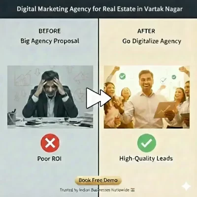 In real estate, not only immediate sales are important, but brand value is also equally important. Go Digitalize is one such Digital Marketing Agency for Real Estate in Vartak Nagar that focuses equally on both short-term sales and long-term brand building. Through consistent digital presence, content and social proof, your brand becomes recognized in Vartak Nagar. The advantage of this is that marketing for future projects becomes easier and more effective.